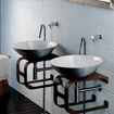 The examples shown here – produced and distributed by Rubinetterie Ritmonio – illustrate very well how the combination brought about in the lavatory, between the basin and the surface that supports it, between traditional and ultramodern materials and between craftsmanship and sophisticated technologies, leads to results where simplicity and elegance blend smoothly with both taste and practical functionality.