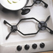 Pan supports have evolved and have a story to tell. Vitreous enamelled cast iron which as been used for decades has been joined by welded supports made from drawn steel wire strip, rolled with rounded edges, which users immediately appreciated because it is lighter and cheaper. Cast iron is heavier, it absorbs more heat and is rather expensive to produce. Recently, cast iron has come back into vogue for top-of-the-range products, while wire strip is very popular for the pan supports on free-standing cookers. The market also offers chrome-plated wire strip supports, but they do not look so good and tend to deteriorate rather easily.